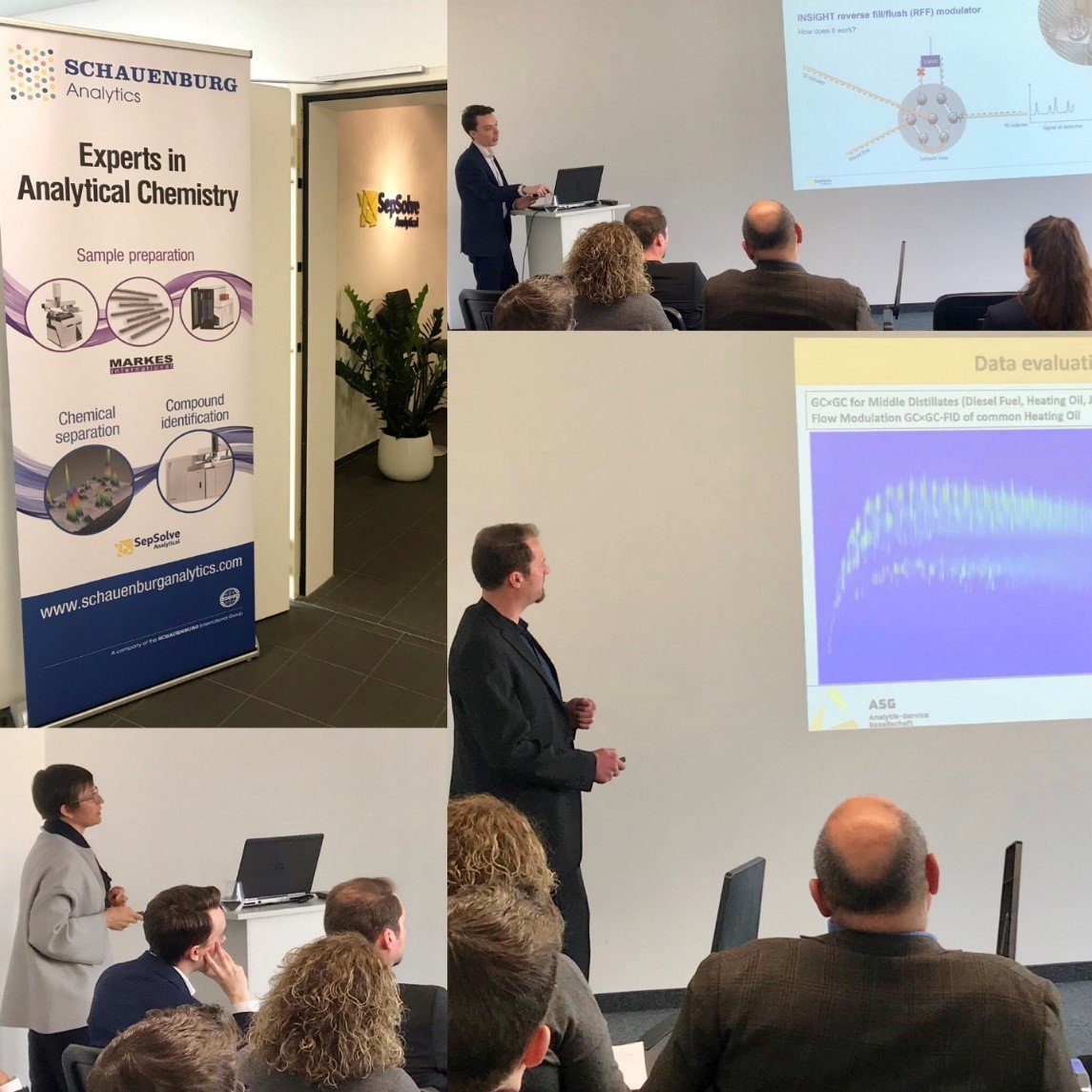 In April we hosted a one-day seminar, titled As Easy as GCxGC, at our facility in Offenbach, Germany. Over 30 delegates from all over Europe came to hear a number of distinguished speakers discuss their work in the field of GCxGC, in which a variety of interesting application areas were covered, such as food and beverage aroma, mineral oil saturated/aromatic hydrocarbons (MOSH/MOAH) and petrochemical fingerprinting. To start the day, SepSolve’s Anthony Buchanan went through the fundamentals of GCxGC, covering advances such as the latest developments in flow modulation.