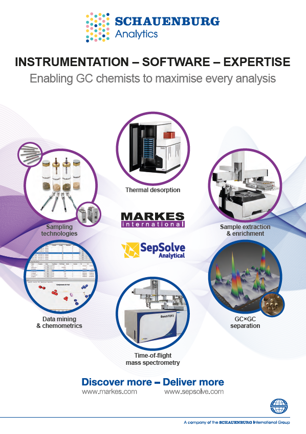 As we communicate the Schauenburg Analytics philosophy and the advantages it can offer GC–MS users in multiple fields, you may come across the group name more regularly, for example on our stand at the Analytica Conference in Germany in June. Emails from our commercial and service teams will also be coming from a Schauenburg Analytics address going forward.