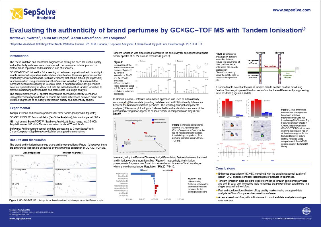 Evaluating the authenticity of brand perfumes by GC×GC‒TOF MS with Tandem Ionisation