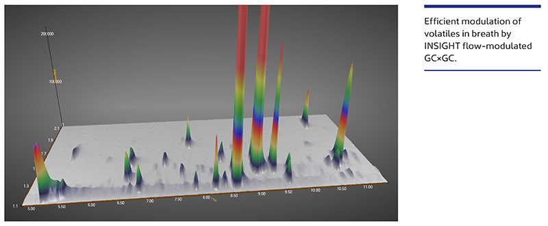 A key aspect of the work is the use of the INSIGHT GCxGC flow modulator, which provides excellent peak shape without the volatility restrictions of thermal modulation, while avoiding the need for expensive liquid cryogen.