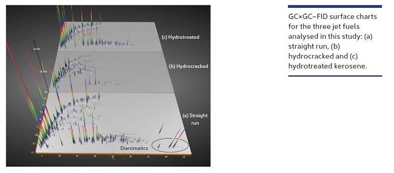 This study demonstrates the performance of flow-modulated GCxGC for robust group-type characterisation of jet fuels, with quantitative analysis by flame ionisation detection and confident identification of trace-level contaminants by mass spectrometry.